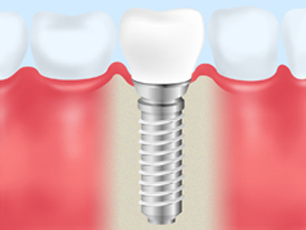 歯を失った部分の顎の骨にインプラント(人工歯根)を埋め込み、その上に人工歯を装着して咬む機能を取り戻すインプラント治療。天然歯と変わらない自然な咬み心地と見た目を取り戻せる治療です。